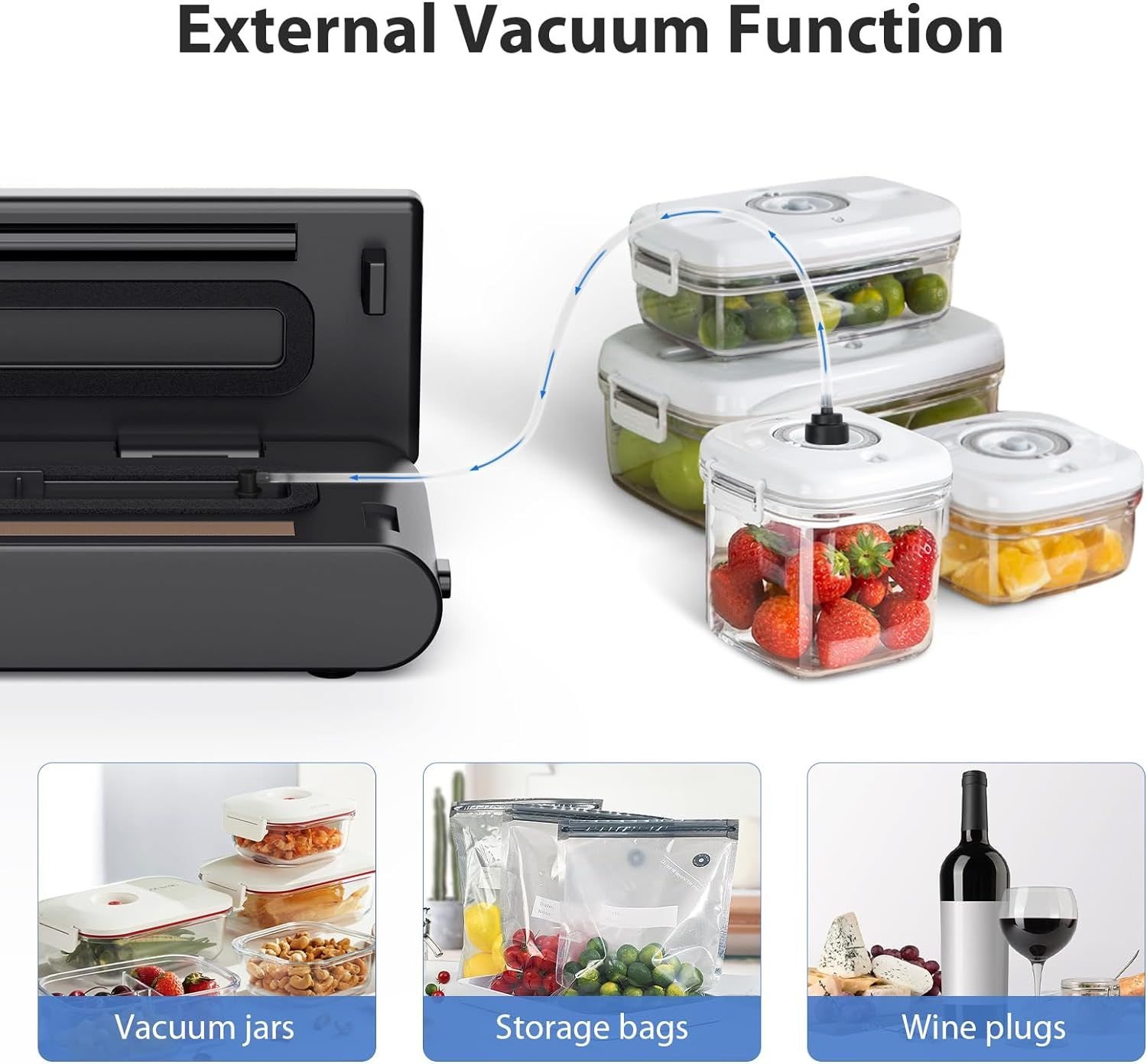 4.Built-in Cutter Design: The electric food vacuum sealer machine built-in a sliding cutter, you can get a smoother customized bag by just cutting it. Tips: Press down the cutter button hard, then slide it to cut